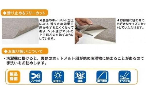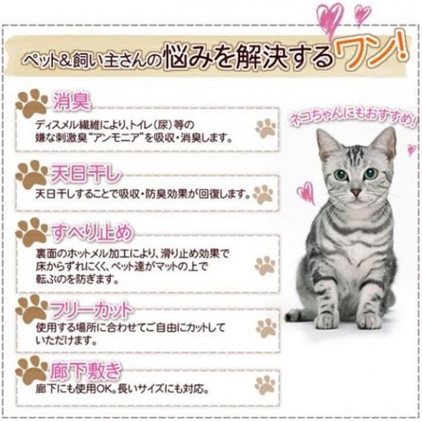 | 気になるペットの臭い対策におすすめの消臭マットです。裏面のホットメルト加工により、滑り止め効果で床からずれにくく、ペット達がマットの上で転ぶのを防ぎます。お部屋に合わせてお好きなサイズにカットしていただけます。 |