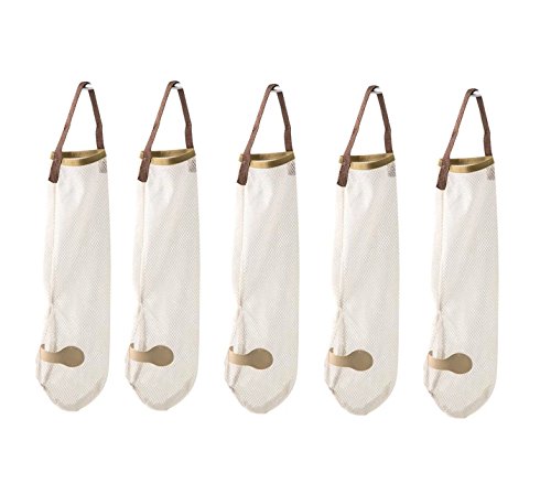 AUCH 5Pcs Hanging Kitchen Reusable Storage Mesh Organizer Holder for Trash Bag, Grocery Bag, Potatoes, Garlic, Vegetable, Fruit and Garbage Bag