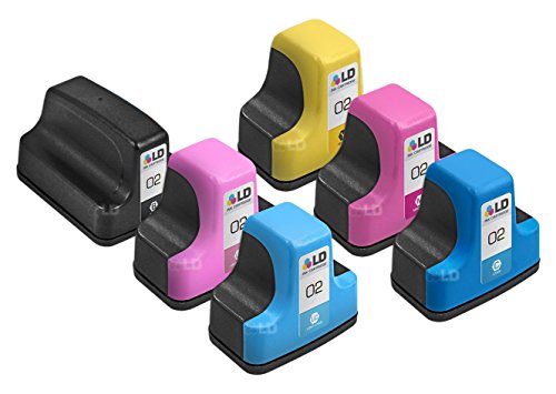 LD Remanufactured Replacements for HP 02 6PK Cartridges: 1 C8721WN Black, 1 C8771WN Cyan, 1 C8772WN Magenta, 1 C8773WN Yellow, 1 C8774WN LT Cyan, and 1 C8775WN LT Magenta