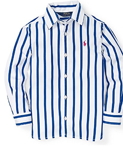 Smart stripes and Ralph Lauren's signature embroidered pony make this cotton poplin shirt a timeless essential. Pair it with a skirt or skinny jeans for an Ivy League-inspired look. Applied buttoned placket Long sleeves with buttoned barrel cuffs