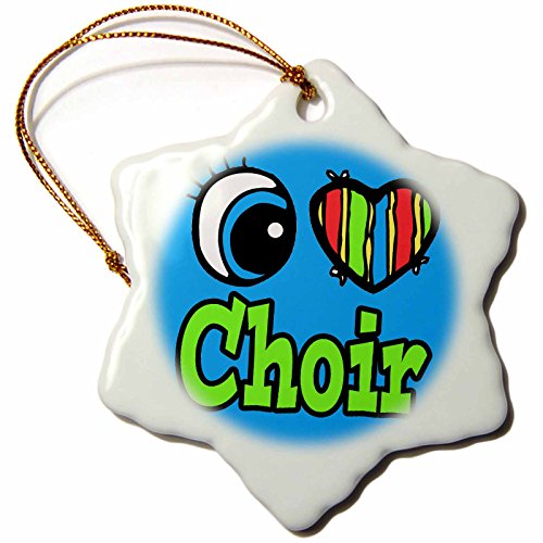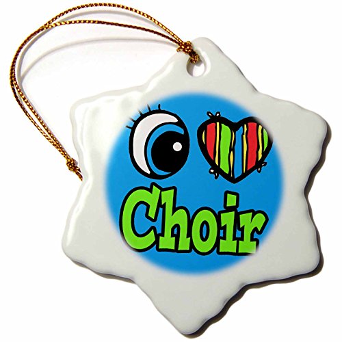 3dRose orn_105965_1 Bright Eye Heart I Love Choir Snowflake Porcelain Ornament, 3-Inch