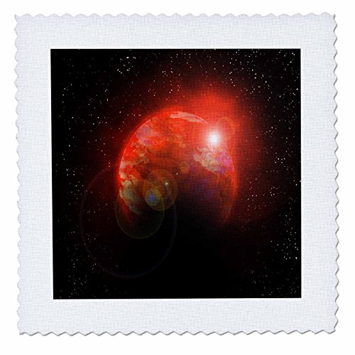 3dRose Orange Sparkle Planet with Circles Against A Star Background - Quilt Square, 8 by 8-Inch (qs_213611_3)