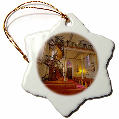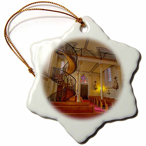 3dRose orn_92592_1 Spiral staircase, Lorretto Chapel, Santa Fe, NM US32 CHA0038 Chuck Haney Snowflake Porcelain Ornament, 3-Inch