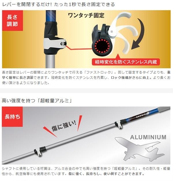 シャフトに「超軽量アルミ」を使用した軽くて丈夫、傷に強いトレッキングポール!! |