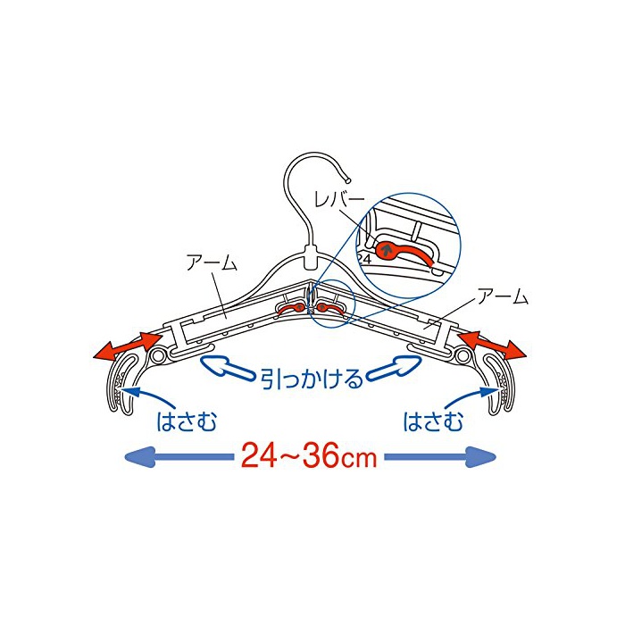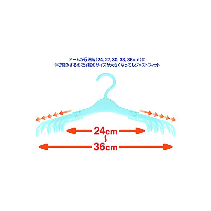 원본상품명: スマ?トスタ?ト 伸縮ハンガ? ベビ?から大人までなが?く使える 肩幅5段階調節24~36cm 18本セット