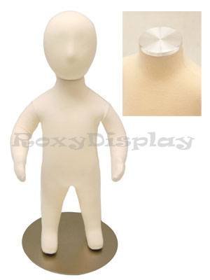 (CH06M-JF) ROXYDISPLAY™ New Child Dress Form 6 month white jersey form cover, with head, flexible arms, fingers & legs, metal base