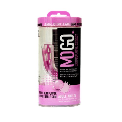 -. Binding : Sports -. Brand : MoGo Sport -. Feature : Flavor is from natural ingredients; all flavors and materials are FDA compliant and BPA free / Quick Release Tether Included / Adult Size-12 years & older / Made in the USA / Youth Size-11 years and younger -. Label : Mogo Sports LLC -. Manufacturer : Mogo Sports LLC -. Model : MOGO1B-T-P -. PackageQuantity : 1 -. ProductGroup : Sports -. ProductTypeName : SPORTING_GOODS -. Publisher : Mogo Sports LLC -. Studio : Mogo Sports LLC -. Title : MoGo Sport Adult Bubble Gum Flavored Mouthguard