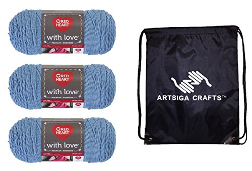 - Bundle Includes 3-Pack of Red Heart With Love Yarn Bluebell E400-1805 with 1 Artsiga Crafts Project Bag