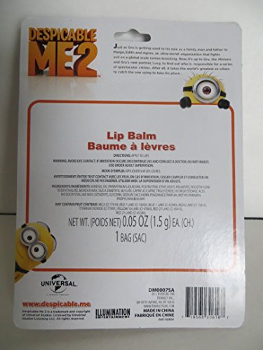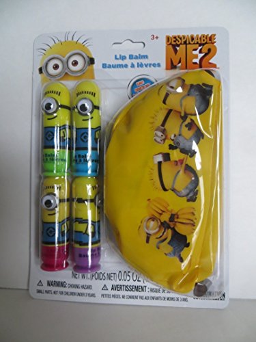 -. Binding : Health and Beauty -. EAN : 0634972681037 -. Feature : Despicable Me 2 Movie Minions Lip Balm + Minions Carrying Case / 4 Separate Lip Balms / 1 Zippered Carrying case with Minions Design / Universal Studios Inspired from the Despicable Me 2 Movie / Great Gift or Stocking Stuffer -. Label : Illumination Entertainment Universal Studios -. Manufacturer : Illumination Entertainment Universal Studios -. MPN : B00Q5X8TL8 -. PackageQuantity : 1 -. PartNumber : B00Q5X8TL8 -. ProductGroup : Health and Beauty -. ProductTypeName : HEALTH_PERSONAL_CARE -. Publisher : Illumination Entertainment Universal Studios -. Studio : Illumination Entertainment Universal Studios -. Title : Despicable Me 2 Lip Balms Plus Minions Plastic/Vinyl Zippered Case -. UPC : 634972681037