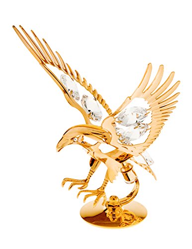-. Binding : Kitchen -. Brand : Crystal Temptations -. Color : Gold Plated Eagle -. EAN : 0700600873638 -. Feature : Made with 6 large plus 2 mini clear Spectra Crystals by Swarovski. / Highly polished, 24k gold-plated metal. All one piece. / Wings spread out beautifully, detail etched claws. Felt on bottom of base. / Small, 3.6" wide wingspan x 2.75" deep x 3" tall. / Well finished. Comes in an attractive box. -. IsAutographed : 0 -. Label : Crystal Temptations -. Manufacturer : Crystal Temptations -. ProductGroup : Home -. ProductTypeName : HOME -. Publisher : Crystal Temptations -. Studio : Crystal Temptations -. Title : Eagle 24k Gold Plated Metal Figurine with Spectra Crystals by Swarovski -. UPC : 700600873638