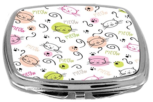 Rikki Knight Cats Illustration Meow Green Peach and White Design Compact Mirror, 17 Ounce