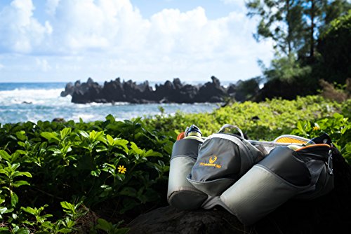 - MORE VERSATILE. The included water bottles feature hooks on their lids, allowing you to attach them to any gear bag for use without the belt.