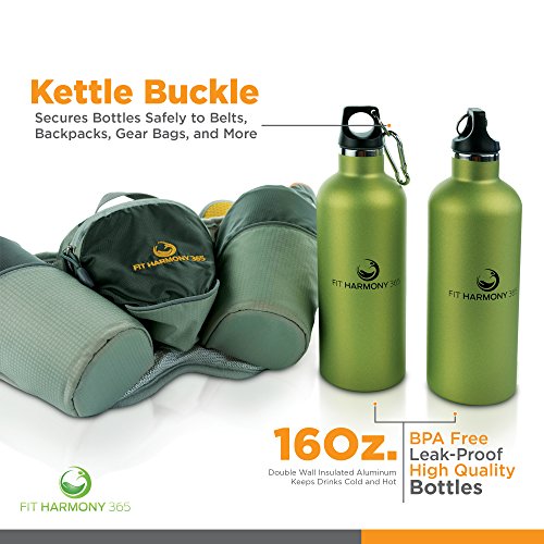 UNBOX AND GO RUN! Hydration belt comes with two, 16 oz BPA free aluminum water bottles that fit into the spacious bottle holders on the sides; Hooks on the top of the bottles allow you to attach them to camping gear or a backpack when you're not wearing the belt