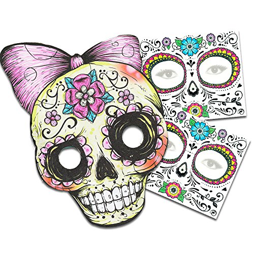 -. Feature : Day of the Dead Sugar Skull Temporary Tattoo Costume Set - Includes two 6" x 5" Sugar Skull Day of the Dead Face Temporary Tattoos (Floral Design). / Day of the Dead tattoos are perfect for Halloween Sugar Skull costumes or to apply at Halloween and Sugar Skull parties. Easy to apply. / Perfect as Sugar Skull and Day of the Dead party supplies, party favors, temporary tattoos, costume accessories and more! Made in the USA. / The perfect gift for any Sugar Skull, Day of the Dead (dia de los muertos) enthusiast! / This set of 6" x 5" Day of the Dead temporary tattoo sheets have lovely rose designs enhanced with glitter accents; perfect for your dia de los muertos or sugar skull costume this Halloween!