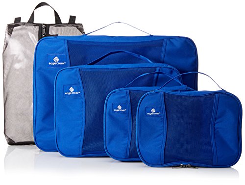 Studio : Eagle Creek Publisher : Eagle Creek Binding : Apparel Product Description Eagle Creek's pack-it cubes help to keep you stay organized on the road. This set comes with two small, one medium, and one large-size packing cube, along with one shoe sac. Use cubes to create packing compartments inside your luggage or duffle. They are great for organizing bulky clothing, shirts, shorts and undergarments. And you'll be so glad you have them when going through tsa security checks because it means no more tsa agents riffling through your personal items. The shoe sac is a must-have, too. Who wants their dirty shoes touching their clean clothes? Yeah, didn't think so. 0