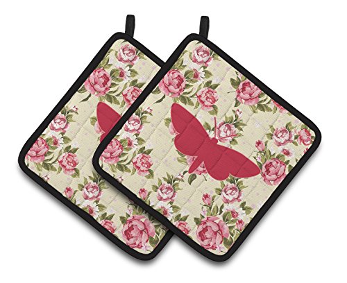 Caroline's Treasures Moth Shabby Chic Yellow Roses Pair of Pot Holders BB1059-RS-YW-PTHD, 7.5HX7.5W, Multicolor