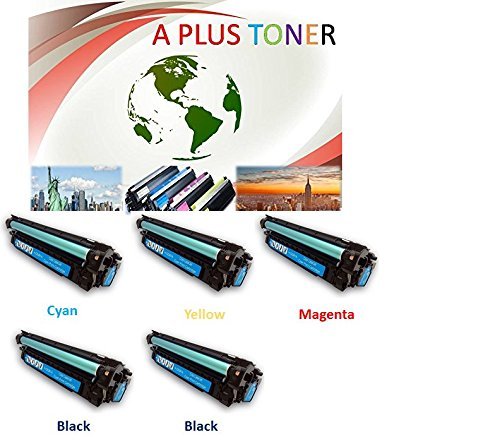 A Plus Toner 5-Pack consisting CE740A, CE741A, CE742A, CE743A of (2Black,Cyan,Magenta,Yellow) Compatible Color Toner Set for HP Color LaserJet CP5220, CP5225, CP5225dn, CP5225n printers