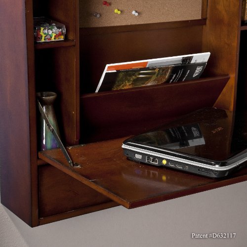 - Feature : Brown mahogany finish / Writing surface is 24-3/4-inch width by 13-1/2-inch depth, large cubby measure 16-1/2-inch width by 5-1/2-inch depth by 13-3/4-inch height / Two medium cubbies measure 3-3/4-inch width by 5-1/4-inch depth by 8-3/4-inch height each, two small cubbies measure 3-3/4-inch width by 5-1/4-inch depth by 4-1/4-inch height each, drawer measure 24-inch width by 5-inch depth by 3-1/4-inch height / Patent number #D632117; completely folds away to save space / Laptop desk