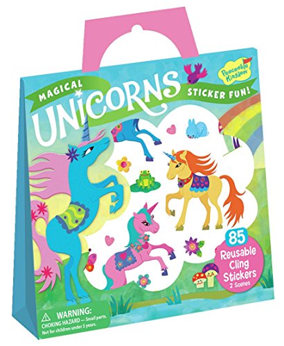 -. Binding : Toy -. Brand : Peaceable Kingdom -. EAN : 0643356056309 -. Feature : Reusable sticker clings with two fun, fold out background scenes offer hours of fun / A great solo play activity that requires no reading but encourages lots of imagination / Handled carrying tote makes this a perfect travel activity; when playtime is done, just toss everything back into the handy tote! / Complete kit includes two 6.25" x 18.75" scenes and 85 reusable stickers / For ages 3 years and older; Peaceable Kingdom packaging is all designed to be frustration free - naturally! -. Genre : Creative -. IsAdultProduct : 0 -. Label : Peaceable Kingdom -. Manufacturer : Peaceable Kingdom -. MPN : SP71 -. PackageQuantity : 1 -. PartNumber : SP71 -. ProductGroup : Toy -. ProductTypeName : TOYS_AND_GAMES -. Publisher : Peaceable Kingdom -. Studio : Peaceable Kingdom -. Title : Peaceable Kingdom Magical Unicorns Sticker Fun! Reusable Sticker Tote -. UPC : 643356056309
