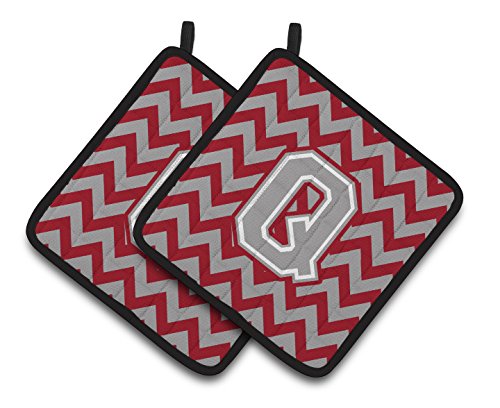Caroline's Treasures Letter Q Chevron Crimson & Grey Pair of Pot Holders CJ1043-QPTHD, 7.5HX7.5W, Multicolor