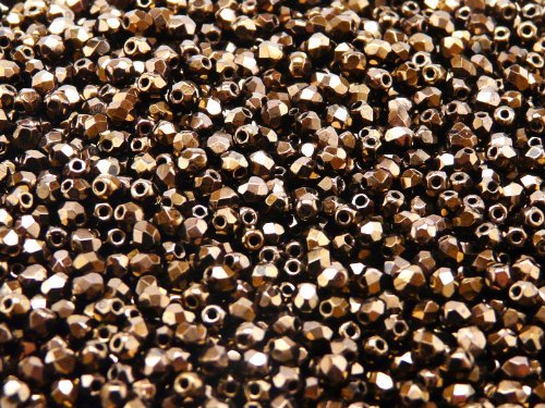 100 pcs Czech Fire-Polished Faceted Glass Beads Round 3mm Jet Bronze Lustre