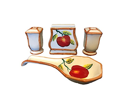 Tuscany Red Apple with Bamboo Trim Hand Painted, Stove Top Set of 4pcs, 84325/28 by ACK