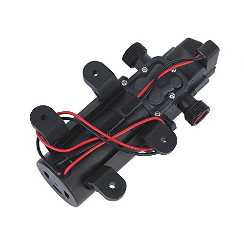 -. Feature : FEATURES: This water pressure diaphragm pump has a configuration power of 60W, so it has a strong water flow (5L / PM 1.35GPM) and strong pressure (116 Psi = 8.0 Bar); if you worry about water pressure or water flow is small, I think This water pressure diaphragm pump will be a good choice; due to pressure and flow greater than 4L / min water pressure diaphragm pump, so the noise will be slightly larger. / FUNCTION: All water pressure diaphragm pump have sealed switch and coating to prevent corrosion; water pressure diaphragm pump in the case of power supply, as long as there is water flow, it began to work, close the valve that will automatically stop working; due to factory testing, the new water pressure diaphragm pump there are some Water, each water pressure diaphragm pump are subject to rigorous testing on the market. / PARAMETER: Water pressure diaphragm pump vertical suction lift: 5ft (1.5m); Flow (MAX):5L/min; Intake Pressure: 0.2Mpa; Rated Pressure: 0.8Mpa; Water pipe interface: 1/2 "screw thread; Size: Approx. 16.5 x 9.5 x 6cm (L*W*H) / APPLICATION: When installed correctly, marine duty fresh water pressure diaphragm pump provide years of operation; This water pressure diaphragm pump can also be used for automatic pump, RV, boat, ocean, agricultural spray (weak acid and weak base) boats, camping trucks and trucks. / NOTE: Water pressure diaphragm pump power requirements DC12V 5A-12A (not included); it is not submersible pump, pay attention to waterproof, to prevent short circuit.