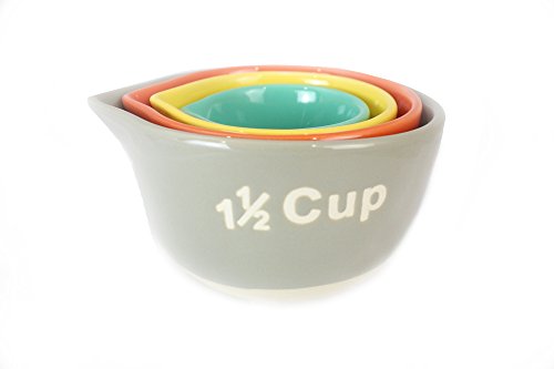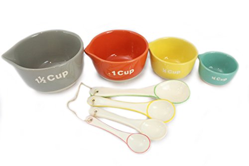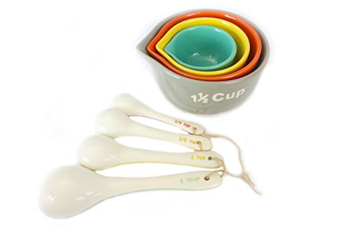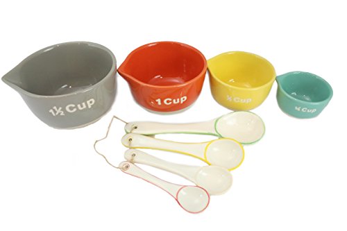 Stoneware Festive Color Measuring Batter Bowl Cups and Spoons WellPackBox Set Pack