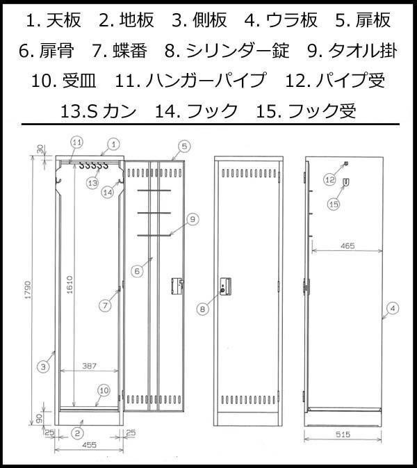 | サイズ | 【外寸】W455×D515×H1790mm、【内寸】W387×D465×H1650mm 個装サイズ:47×53×179cm |