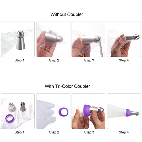 VERY EASY TO USE - The practical size of the russian nozzles and tri color coupler will allow you to beautifully decorate cakes & cupcakes with a smooth move.Only one step to make a beautiful flower, just squeeze! Even if you are a beginner, you can also make beautiful & delicious cake like professionals.