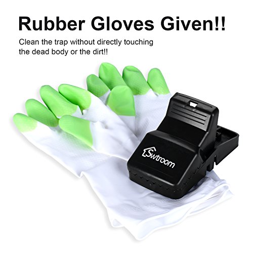 Swtroom Rat Traps, Safe & Sanitary Rodent Killer with Bait Cup ,Effective Anti-Rodent Infestation Solution ,Reusable &Durable,Plus one bonus Rubber Gloves for Cleaning.12 Packs
