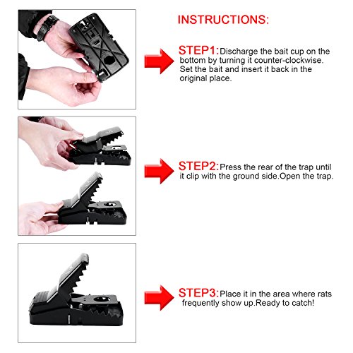 EFFECTIVE DESIGN-This high effective snap trap comes with improved trigger equipment,making it faster and easier to set than traditional wood or metal traps.Increased capturing power and sensitive design ,100% kill the rat and won’t let it escape once it touch the pedal.