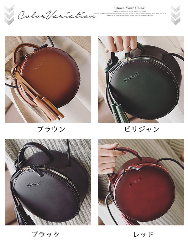 丸いバッグ 円形 丸 肩掛け ハンドバッグ ミニ チェーン かばん 斜めがけ ポシェット マザーズバッグ トートバッグ ママバッグ ショルダー 手提げ レディース 鞄 パーティーバッグ 巾着 バケツバッグ 大容量 収納 フリンジ商品詳細■サイズ:高さ:約17cm/横幅:約14cm/厚さ:約8cm/ショルダー110cm■素材:合成皮革人気の小さめバッグは内ポケットもついており見た目よりも収納力があります。普段使いからお出かけやパーティなどに使える上品なデザインです。★備考●測り位置や測り方によって2-4cm誤差があり、予めご了承してください。●お品物の色合いは撮影環境、PCパソコン画面の表示環境により、若干異なる場合がございますので、予めご了承してください。●製造上、留め口、金具(マグネット)部分に小さいキズがある場合があります、予めご了承してください。●素材のため、お届けの際に臭いがある場合がございますが、数日干していただけますと軽減します。●通常8~10日間お届けます。
