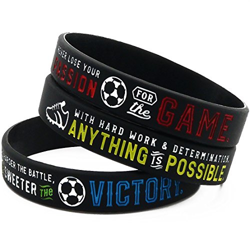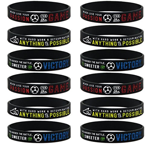 - Bulk pack of 12 soccer silicone bracelets with motivational messages and positive affirmations for soccer players, coaches, and fans