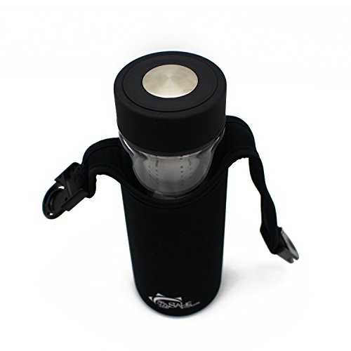 Tea Infuser Bottle & Cold Brew Coffee Maker, Glass Travel Bottle with Removable Stainless Steel Tea Infuser Strainer For Loose Leaf Tea and Fruit Water with Handle Neoprene Sleeve