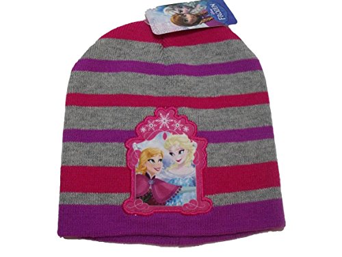 Product Description Brand new, with tags attached; AWESOME Disney Frozen girl knit hat. Purple, Pink Grey stripe with Frozen applique. One size fits all because they are very stretchy. NOT FOUND IN STORES. 0