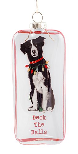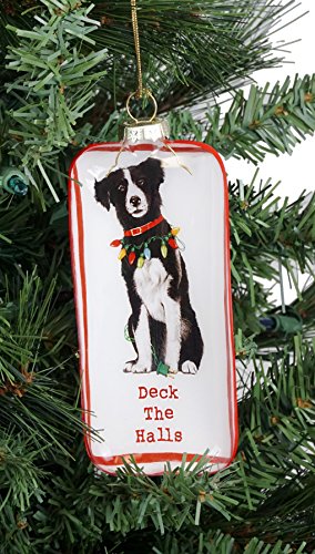 - Features a shadowbox ornament with a border collie wearing a strand of Christmas lights around it's neck & says: "Deck the Halls"