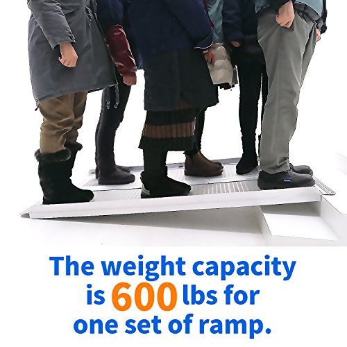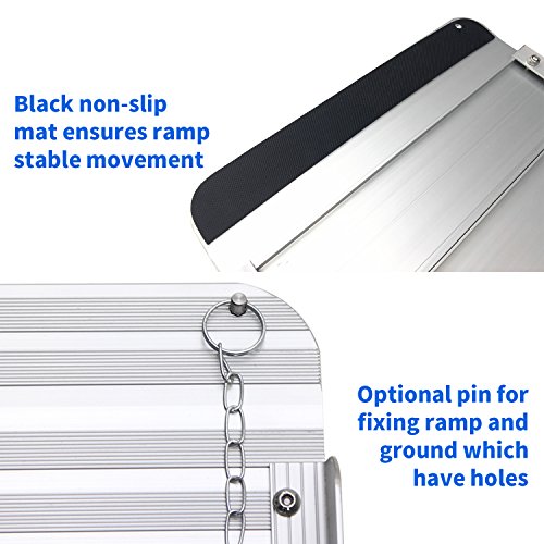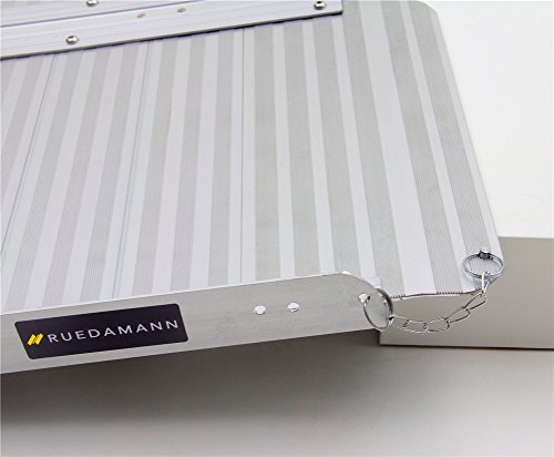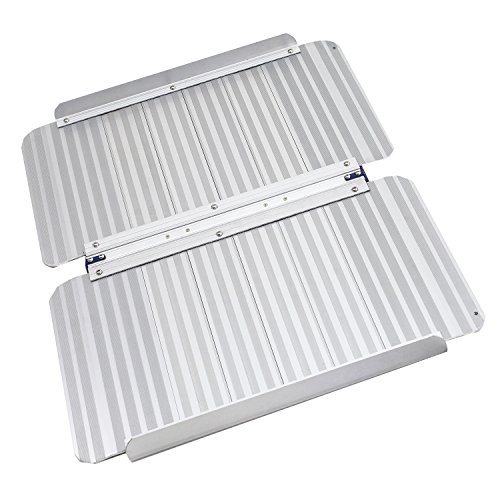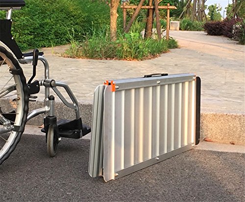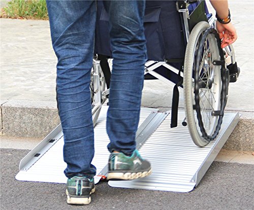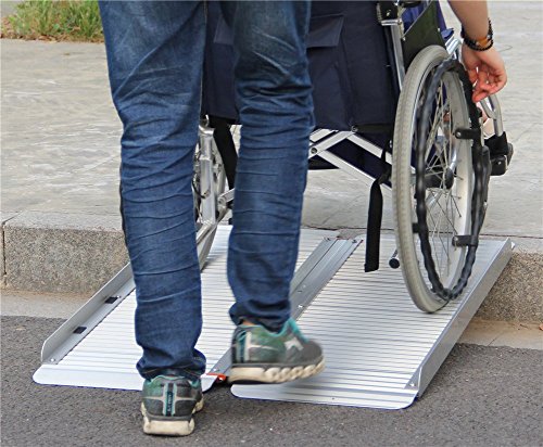 The Ruedamann 2' suitcase style ramp is perfect for loading onto porches, curbs, landings, steps, or into full-size and mini vans. The ramps folding design make them convenient for storage and portability. This ramp can be used with wheelchairs, and other similar item that may have trouble with stairs. Features: 1. Brand new and high quality 2. It is easy for you to set up and push the wheelchair on stairs 3. Made of durable and reliable material, it can be used for a long time 4. Non-slip surface ensures stable movement 5. Curved lips suits any flat surface 6. Maximum gradient: Our suggestion is no higher than 5.9" 7. Can be used for manual wheelchair and parts of power wheelchairs which front wheels and back wheels are in one line 8. Nylon handle, small and strong Specifications: 1. Material: Aluminum Alloy 2. Color: Silver 3. Size: 2 ft 4. Product Dimensions: L23.6" x W28.3" x H1.37" 5. Folding Dimensions: L23.6' x W14.5' x H1.37' 6. Weight capacity: 600 lbs 7. Product net weight: 9 lbs 0 |