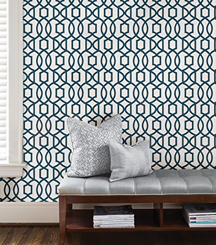 Wall Pops NU1648 Grand Trellis Peel and Stick Wallpaper, Navy