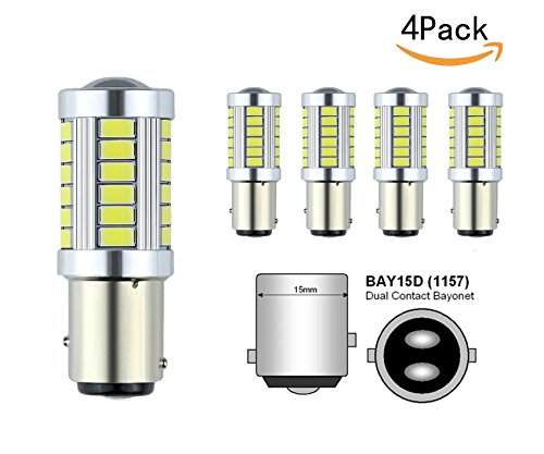 JKLcom 1157 BAY15D 5730 33SMD White LED Light Bulbs LED Turn Signal Bulbs Car Auto Brake Taillight Parking Light (Pack of 4)