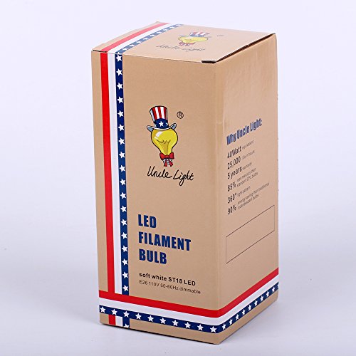 LED Edison Light Bulbs Dimmable,E26 base 3.5W 2700K Soft White 370 Lumens ST18 Vintage LED Globe Bulb,UNCLELIGHT, 40W Equivalent LED Filament Bulb, UL Listed (6 Pack)