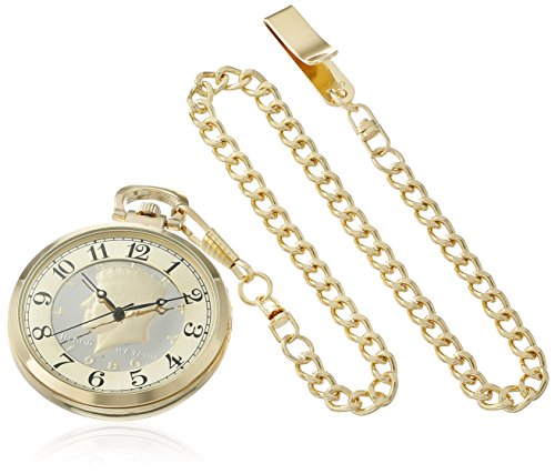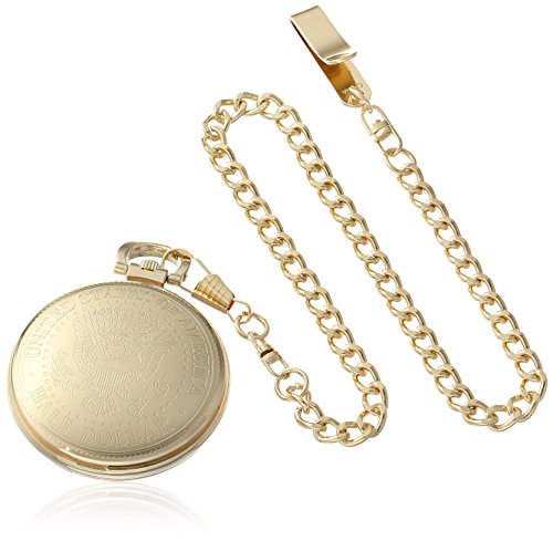 Studio : TWI Watches, LLC Publisher : TWI Watches, LLC Binding : Watch Product Description A true testament to the classic world of watchmaking, this August Steiner pocket watch features a daring 48mm case with a high polished yellow gold tone finish. A radiant outer dial features classic Arabic numeral markers that surround a US half-dollar set squarely at the center of this timepiece, while the case back is etched with the eagle and American motto, “E pluribus unum”. This fantastic timepiece comes with a 14” yellow gold tone stainless steel chain. 0