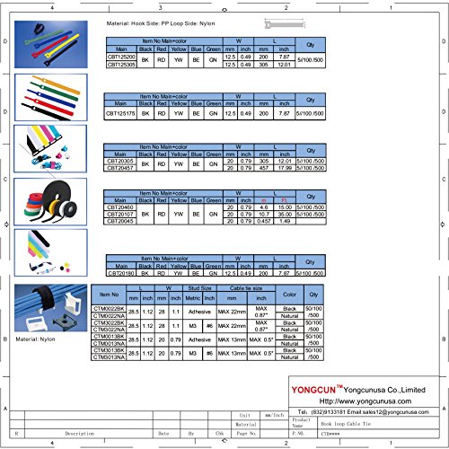 Yongcun Hook and Loop Cable Ties 12" Hook Loop Cable Tie Cable Management 50pcs 5 Color (12" B)