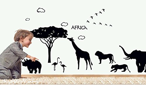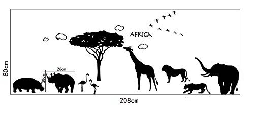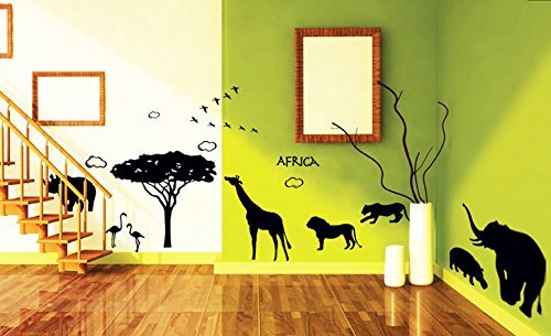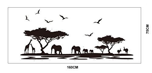 -. Title : Amaonm® Removable Diy Vinyl Hot Fashion Huge Black Tree Elephant Giraffe Antelope Twilight Scene Sunsets Home Art Decor Wall Decals Wall Stickers Murals Peel Sticke Wallpaper for Living Room Offices Wall Decorations