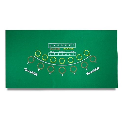 The 5-player layout is fully-featured and casino authentic, including player and banker betting areas, 5 commission spaces, tie provisions, and a marked dealer area. Lightweight and high-quality, this felt is perfect for traveling games or for building a dedicated table.