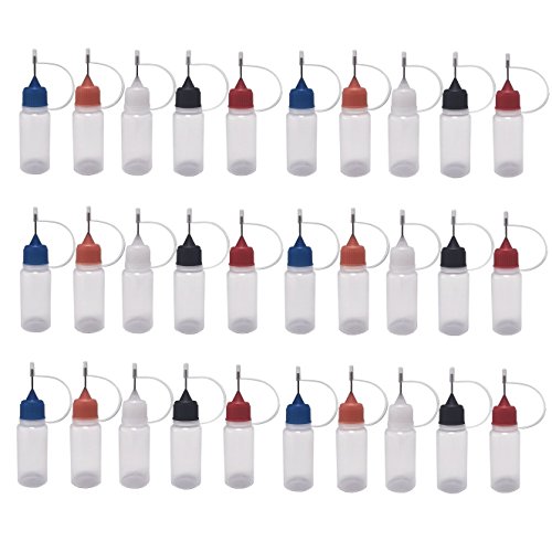 (30 Pack, 10ml, Multi Color Caps) Needle Bottle dropper bottle eliquid bottle liquid bottle squeeze bottle Steel Needle TIP Dropper Bottles