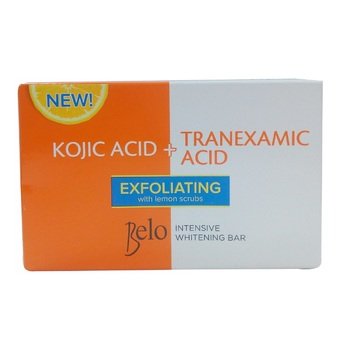 Why you should use BELO KOJIC AND TRANEXAMIC ACID WHITENING HERBAL SOAP: Acne Relief: The exfoliating properties of Herbal soap also make it an effective acne treatment when it is used on the face or on other acne prone skin, according to "Healing Power of Herbal". This is because one of the primary causes of acne is the tendency for dead skin cells to clog the pores instead of being shed from the skin's surface normally. The Dermatology reports that dead skin cells and excess sebum oil can accumulate inside hair follicles, causing a pimple to form, when the skin's natural exfoliating process doesn't work as it should. Only through manual exfoliation can this cause be treated or eliminated.