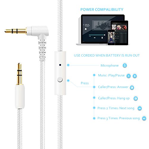 Wire/Wireless mode : Switches are located at both sides of the headphone, you can easily have your control : go to next song, previous song, volume control when using bluetooth mode. Even when your headphone has run out of battery, you can still plug in the Riwbox D1 braided audio cable to continue using. Microphone comes with the D1 braided audio cable so you can make your phone calls in clear voice. The cable supports control from various devices like smartphones, tablet PC, music players.