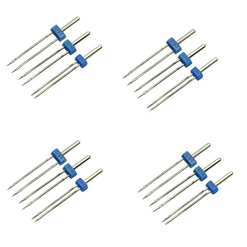 Farmunion Twin Stretch Machine Needle Double Twin Needles Pins 12 pcs (3pcs Twin Needle Size Mixed 2.0/90 3.0/90 4.0/90)