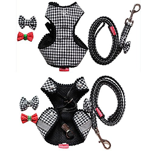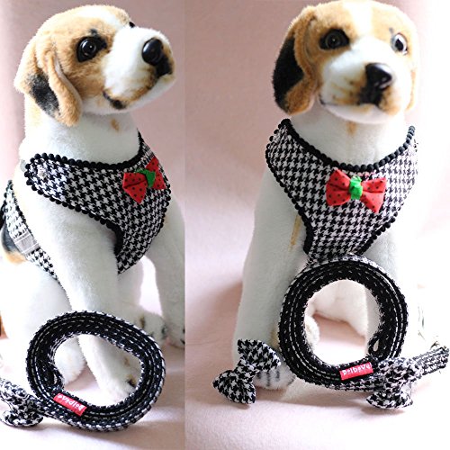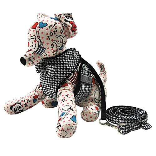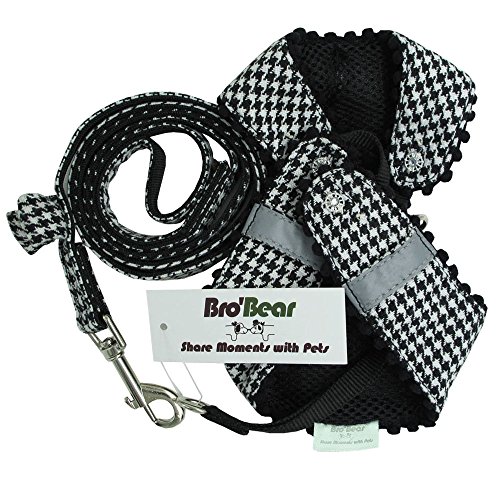 -. Title : Bro'Bear Adjustable Houndstooth Pet Harness and Leash Set